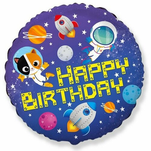 Шар фольгированный 18" «С днём рождения», космос, круг