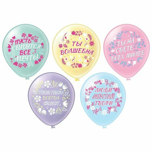 БиКей Шар латексный 12" «Женская мотивация!», 5 дизайнов, 1-сторонний, набор 25 шт, микс