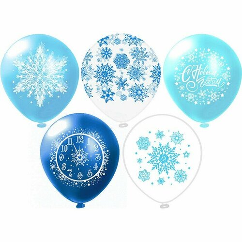 БиКей Шар латексный 12" "Праздник НГ!" шелк, 2 ст,+ 5 ст, 5 диз, набор 25 шт.