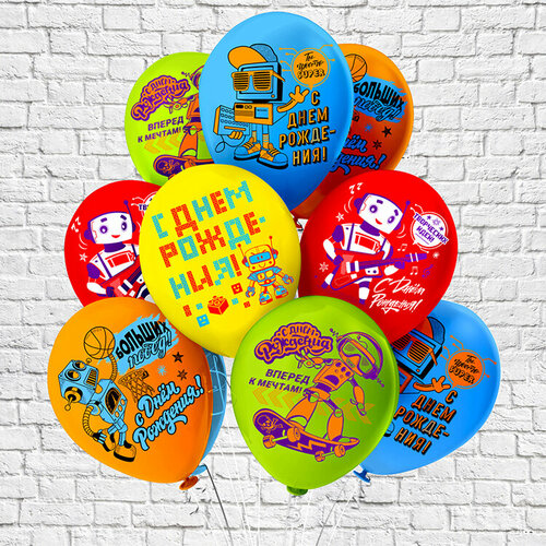 Воздушные шары. С Днем Рождения! Роботы! 5 дизайнов, 10 шт. (12”/30 см, THA)