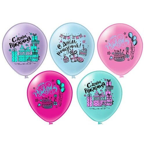 Набор воздушных шаров С Днем Рождения, комплименты девушке, латекс, 9 шт цветные