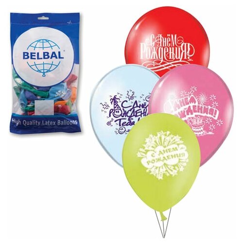 Шары воздушные 12" (30 см), комплект 250 шт, 12 цветов, 8 рисунков "С днем рождения", в пакете, 1103-0081