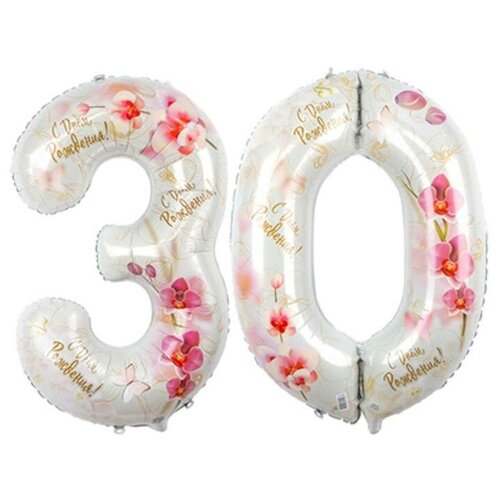 Весёлая Затея Шар фольгированный 40" цифра 30 "Орхидеи"
