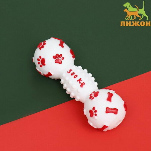 Игрушка пищащая "Новогодняя Гантель", 12.5 см, белая