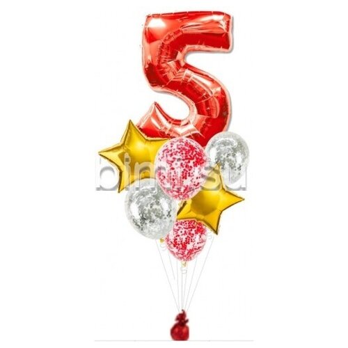 Шары надутые Гелием бими Фонтан из шаров с Красной цифрой, золотом и серебром