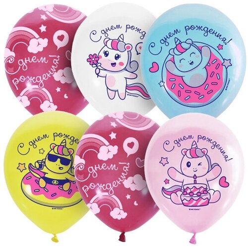 Воздушные шары, 25шт, M10/30см, ПатиБум "СДР Единороги Пончики"