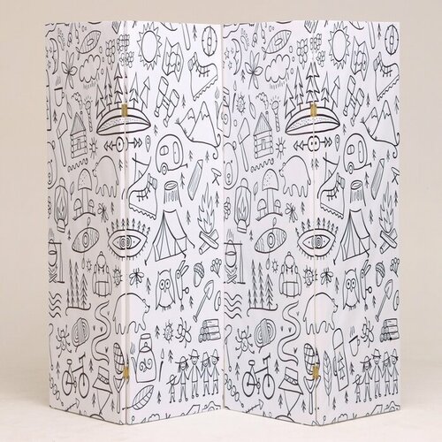 Дарим Красиво Ширма детская "Разукрашки-каракули. Паттерн Doodle style. Поход", 200х160 см