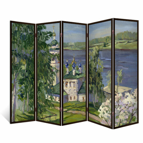 Цены на Ширма перегородка Декор Депо для комнаты деревянная "Вид на цветущий сад" двухсторонняя с картинкой (цветы) 4 створки венге 176х185 см 14 кг в г. Москва