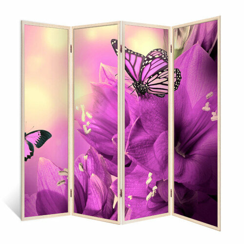 Ширма перегородка Порхание 4 створки кремовый дуб 176х185 см