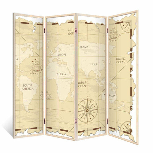 Ширма перегородка Карта континентов 4 створки кремовый дуб 176х185 см