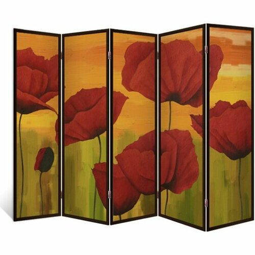 Ширма перегородка Декор Депо для комнаты деревянная "Солнечные маки" двухсторонняя с картинкой (цветы) 5 створок венге 176х230 см 18 кг