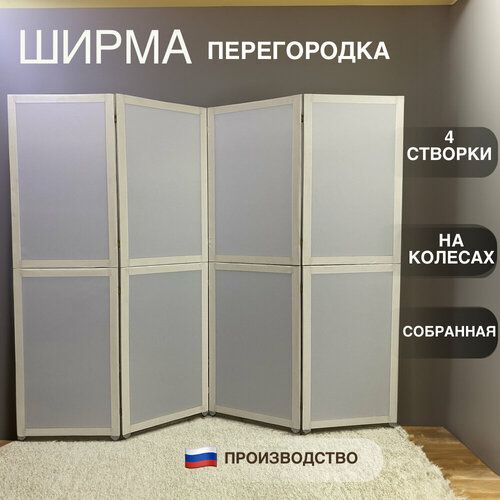 Ширма перегородка для зонирования комнаты белая 4 створки модульная