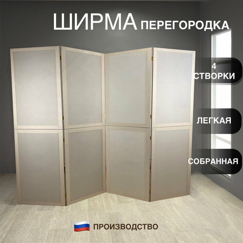 Ширма перегородка для зонирования комнаты бежевая 4 створки модульная