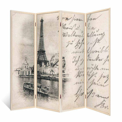 Ширма перегородка Открытка Эйфеля 4 створки кремовый дуб 176х185 см