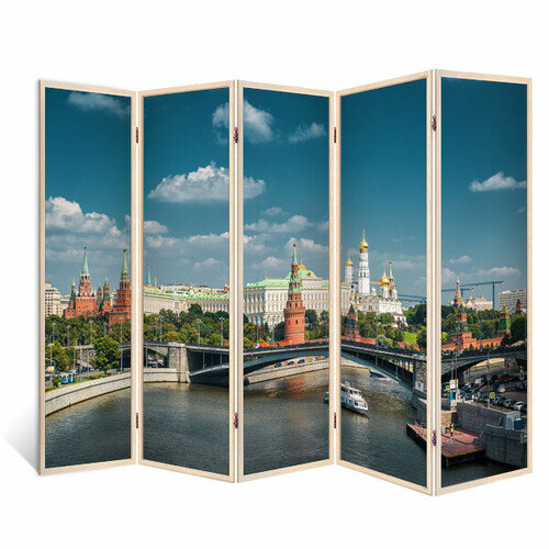 Ширма перегородка Река Москва 5 створок кремовый дуб 176х230 см