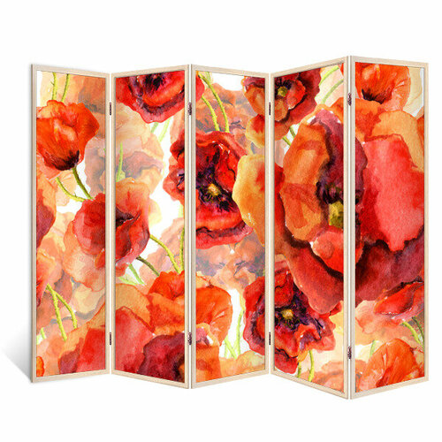Ширма перегородка Маки 5 створок кремовый дуб 176х230 см