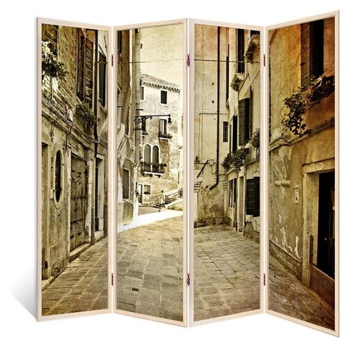 Ширма перегородка Солнечная улица 4 створки кремовый дуб 176х185 см