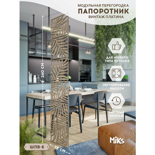 ШПВ-6-ДВП Папоротник Ширма-перегородка подвесная модульная MiKs для зонирования комнаты, салона красоты, офиса, кафе, дома, гостиной и детской, интерьерная