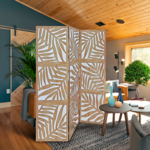 РШП-3*3 ДСС Ткань белая. Папоротник Ширма перегородка складная напольная MiKs для зонирования комнаты, салона красоты, офиса, кафе, дома, гостиной и детской, интерьерная