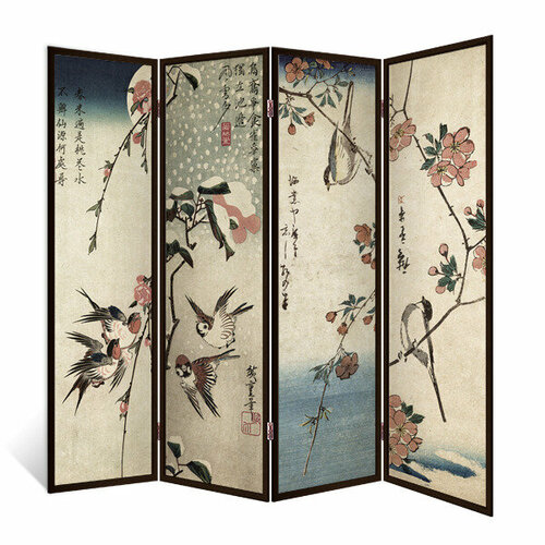Ширма перегородка Японские птички 4 створки венге 176х185 см