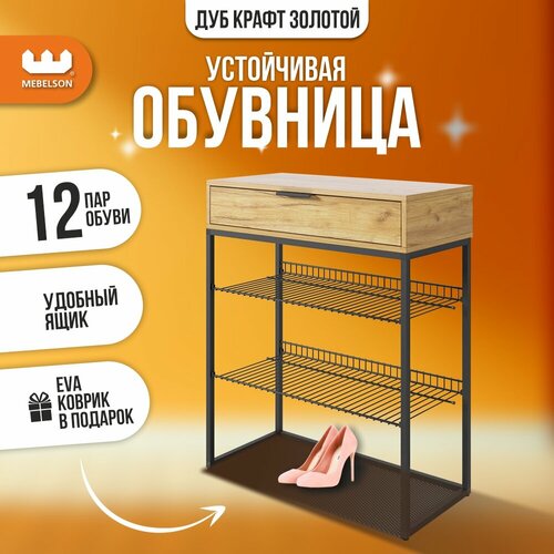 Обувница MEBELSON Краш, размер (ШхГxВ): 75х33.4х90.5 см, обивка: отсутствует, цвет: черный муар/дуб крафт золотой