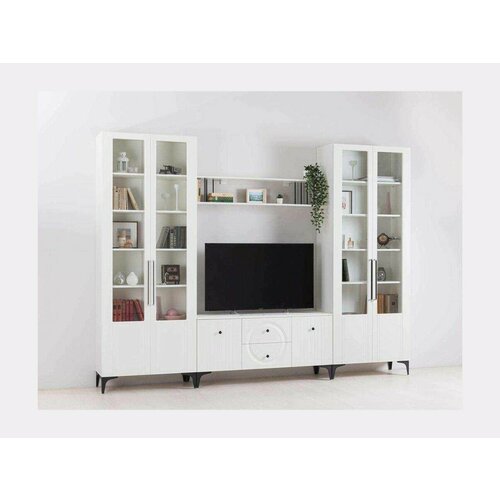 Гостиная Mobi Сидней Комплектация № 26 Корпус: белый/чёрный/фасады: МДФ белый глянец