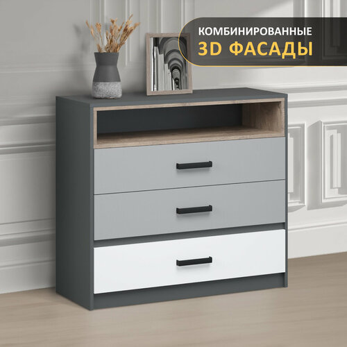 Комод Квадро 3 ящика серый в комнату, спальню, гостиную, прихожую (ШхГхВ 100х40,6х90,5 см)