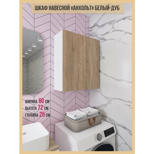 Шкаф навесной для ванной Анхольт Дуб-Белый