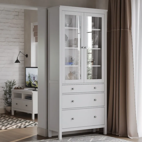 Шкаф-витрина (сервант, буфет) для посуды с 3 ящиками кантри 23 (хемнэс), 90x197 см