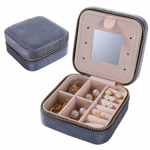 Бархатная шкатулка для хранения украшений Малика серая с зеркалом, дорожный органайзер для ювелирных украшений