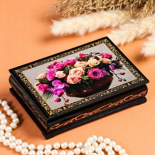 Шкатулка «Орхидеи с розами», 10×14 см, лаковая миниатюра