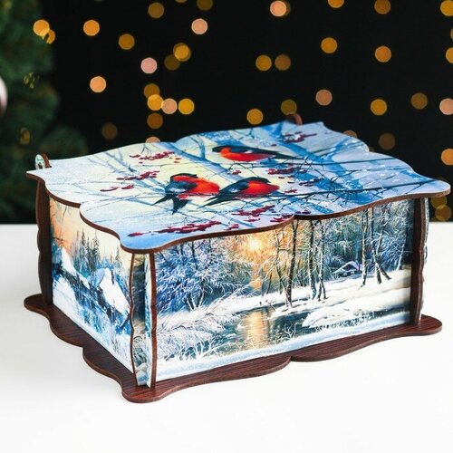 Шкатулка большая новогодняя "Снегири", микс, 20х15х8,5 см