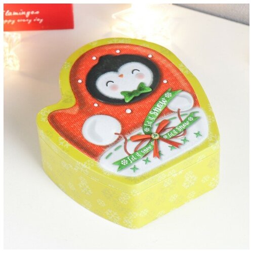 Шкатулка металл варежка "Пингвин" 5,3х12,8х14 см
