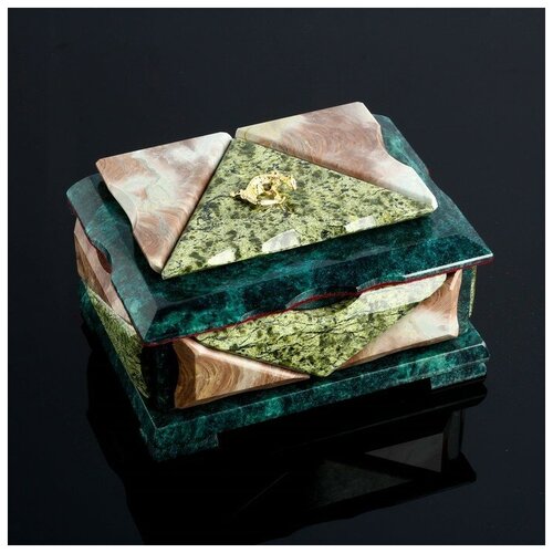 Шкатулка с пейзажем "Осень", каменная крошка, змеевик микс