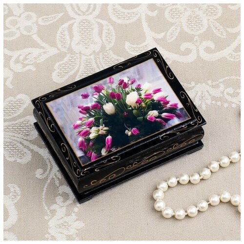 Шкатулка "Тюльпаны" , 8х10 см , лаковая миниатюра (1шт.)