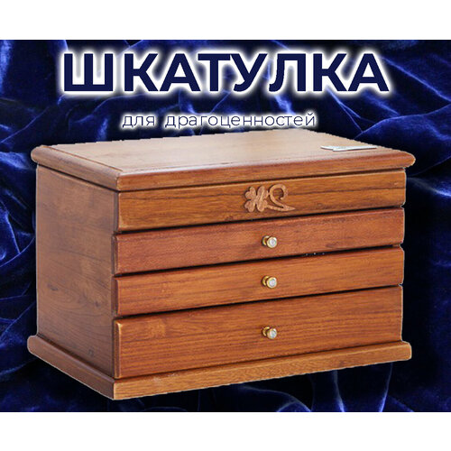 Шкатулка для украшений, 3 выдвижных ящика, цвет орех