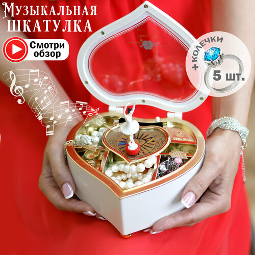 Шкатулка музыкальная с балериной + 5 колечек в подарок