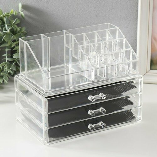 Шкатулка-органайзер пластик 3 ящика прозрачная 19х24х14 см