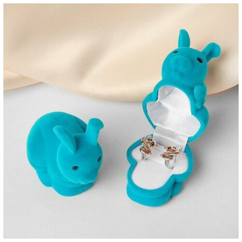 Шкатулка бархатная под серьги, кольцо Кролик 5,7*4,5*5,2см, цвет бирюзовый, 1 шт.