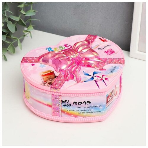 Шкатулка музыкальная механическая "Сердце в банте" 16х18х7,5 см микс