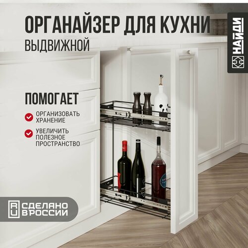 Бутылочница (ширина 150 мм), с направляющей без доводчика. Черный муар