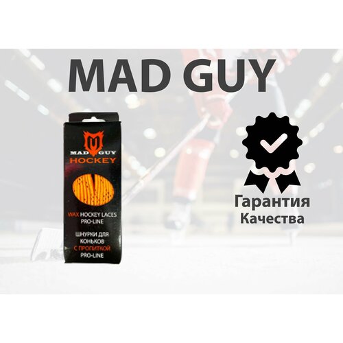 Шнурки хоккейные MAD GUY с пропиткой Elite (оранжевый-черный) - 274 см
