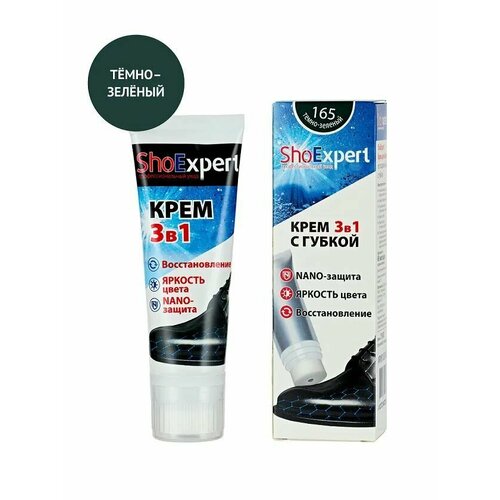 Крем для обуви ShoExpert (Темно-зеленый)с губкой для гладкой кожи, 75 мл