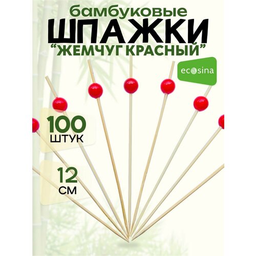 Шпажки пики Ecosina деревянные бамбуковые Жемчуг "Красный" 12см