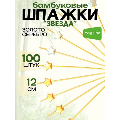 Комплект Шпажки деревянные Ecosina бамбуковые пики для канапе набор Звезда 12 см 100 штук