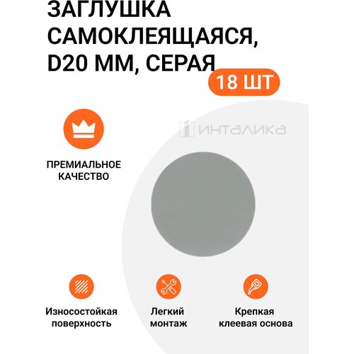 Заглушка самоклеящаяся для мебели, серая, 20 мм, упаковка 18 шт.