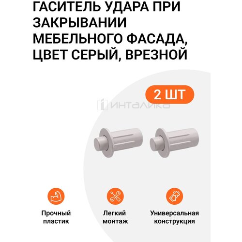 Мебельный демпфер амортизатор для плавного закрывания двери, универсальный (накладной и врезной), темно-серый, 2 шт