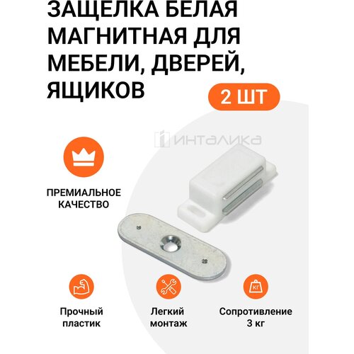 Магнит мебельный 46x15x13 мм, 2 шт. (защелка магнитная для мебели, дверей, ящиков)