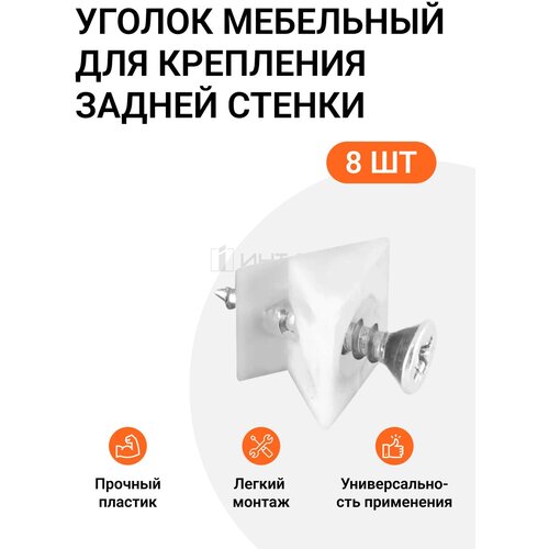 Уголок мебельный для крепления задней стенки из ДВП или дна ящика с саморезом, 8 шт