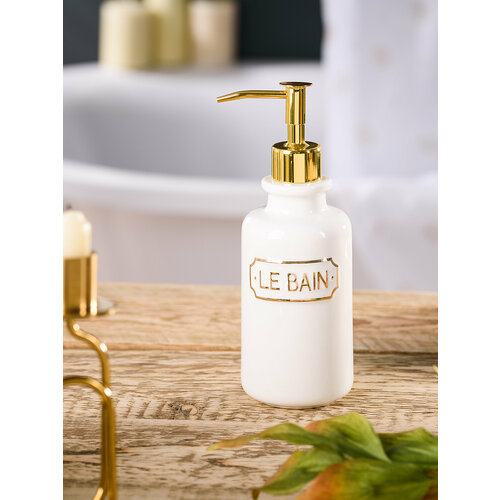 Дозатор для жидкого мыла Le Bаin blаnc, 7х7х20,5 см, цвет белый и золотой